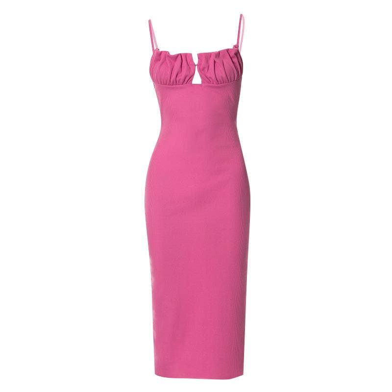 Buckle one shoulder slit irregular solid maxi dress