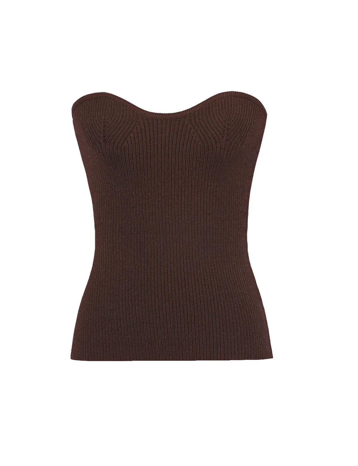Structured thick chocolate brown knit strapless bustier top . Make a statement in this sweetheart neckline knit top.