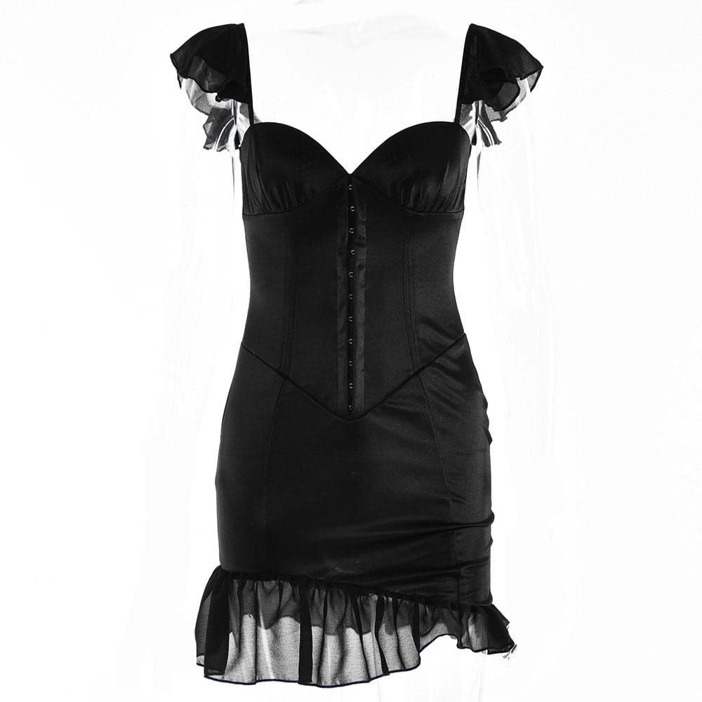 Long sleeve solid see through sheer mesh fluffy round neck mini dress
