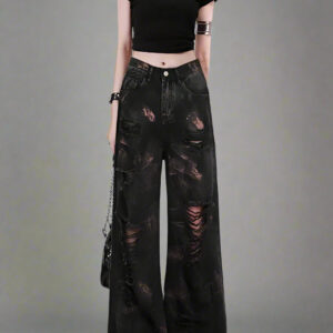 Distressed Edgy Wide-Leg Jeans