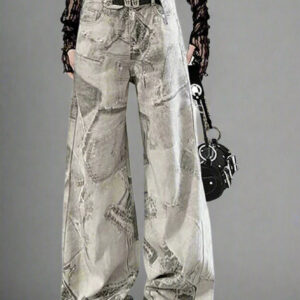 Edgy Washed Graffiti Wide-Leg Jeans