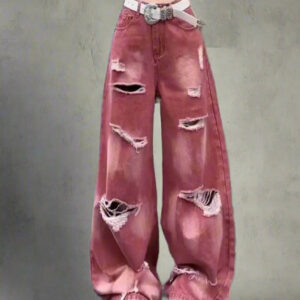 Rose Distressed Edgy Baggy Jeans