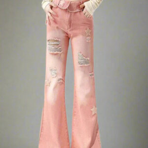 Starry Pink Edgy Distressed Jeans