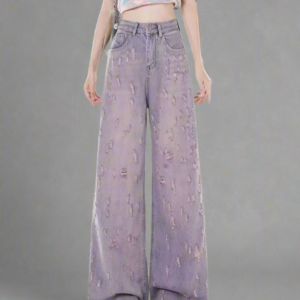 Edgy Lilac Distressed Wide-Leg Jeans
